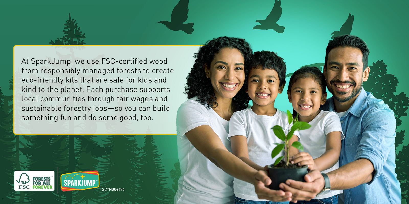 Build with confidence knowing 100% of our lumber in our woodworking kits are sourced from well managed and certified forests.