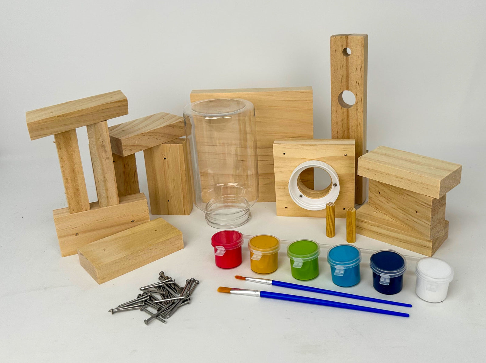 All-Inclusive Awesomeness: Our kids' building kit comes with everything you need for a smooth crafting experience: a 16-ounce plastic mason jar, 30 nails, 16 wood pieces, a 60ml paint set, 2 brushes, 3 pieces of sandpaper and our full color step-by-step instructions. The perfect stress-free wood crafts for kids 4 years and up!